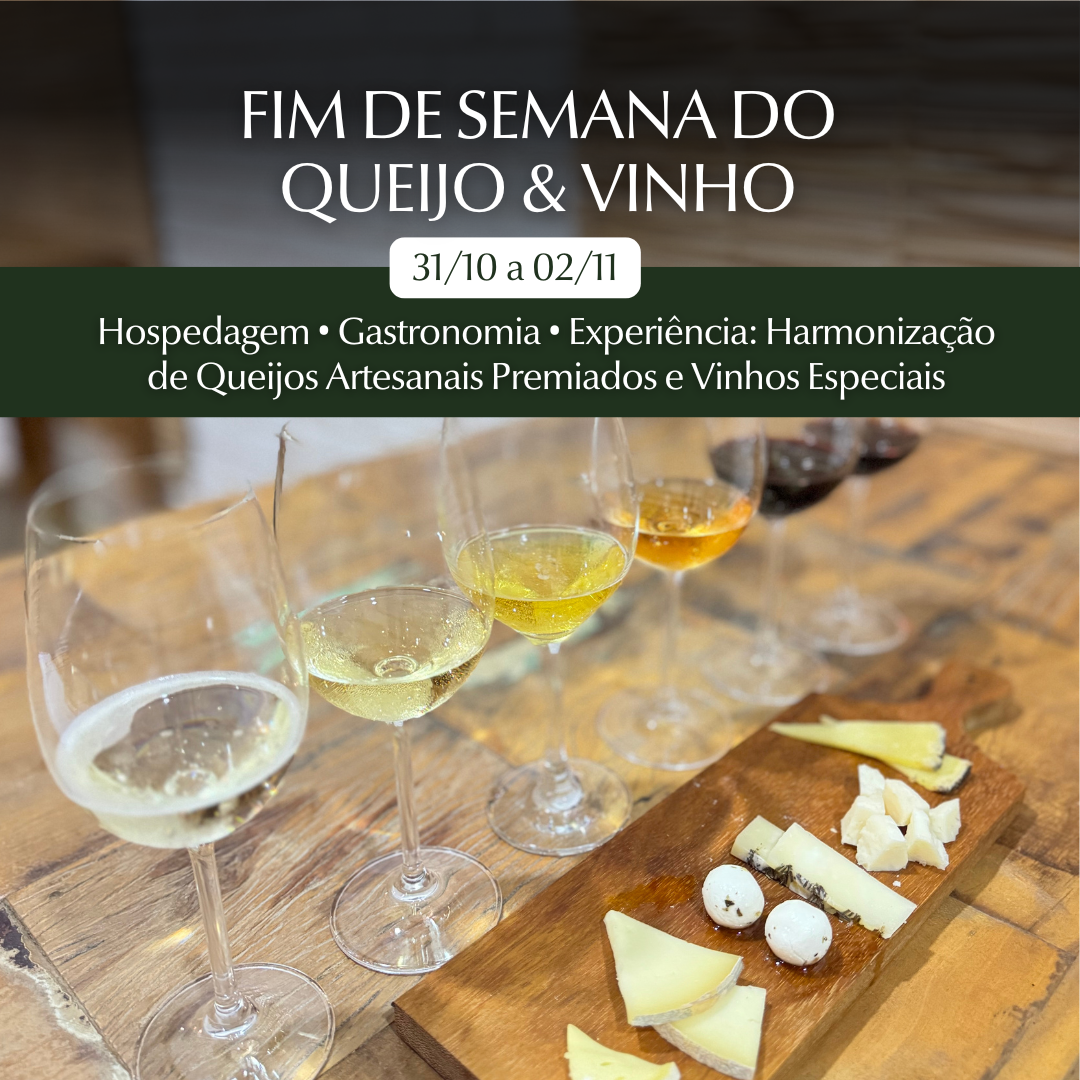 O final de semana do Queijo e Vinho inclui hospedagem, gastronomia e a experiência conforme programação abaixo:
