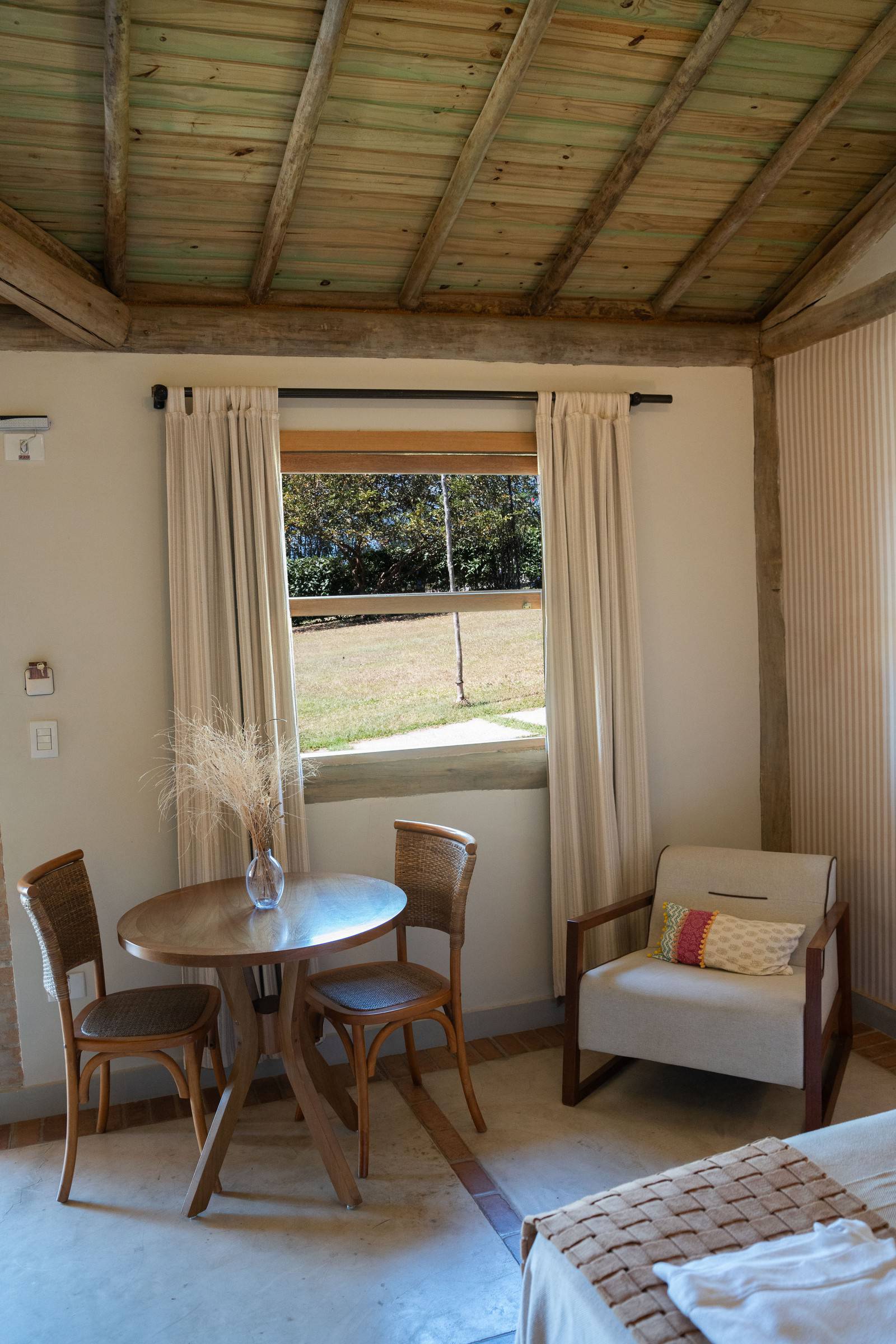 A Cabana Dupla com Hidro Luxo pode ser configurada com uma cama de casal ou duas camas de solteiro. Possue 30m2, hidro com jatos turbo e varanda com vista para o jardim. Amenities L’Occitane au Brésil, Enxoval 300 Fios e Toalhas Trousseau.