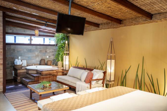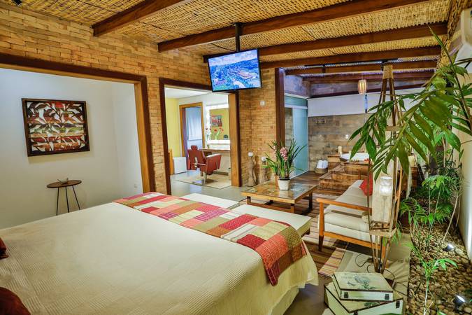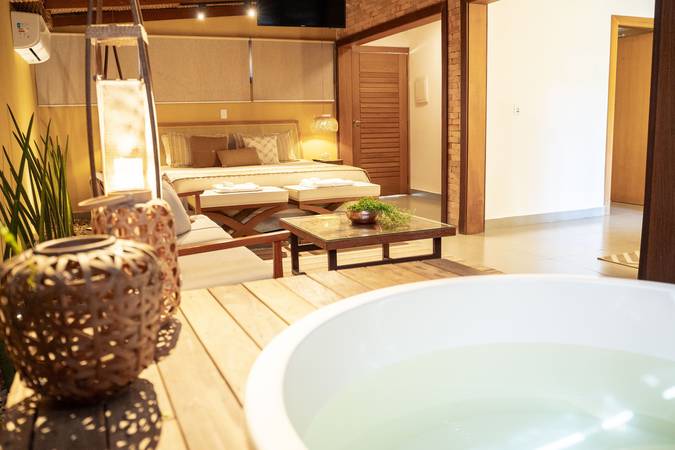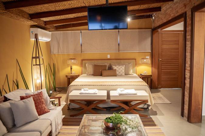 Ideal para casais que gostam de espaço, muito conforto e privacidade. Pode ser configurada também para acomodar três ou quatro pessoas.