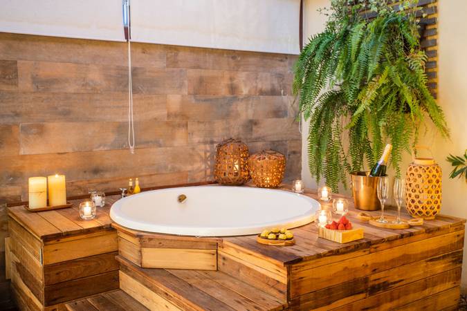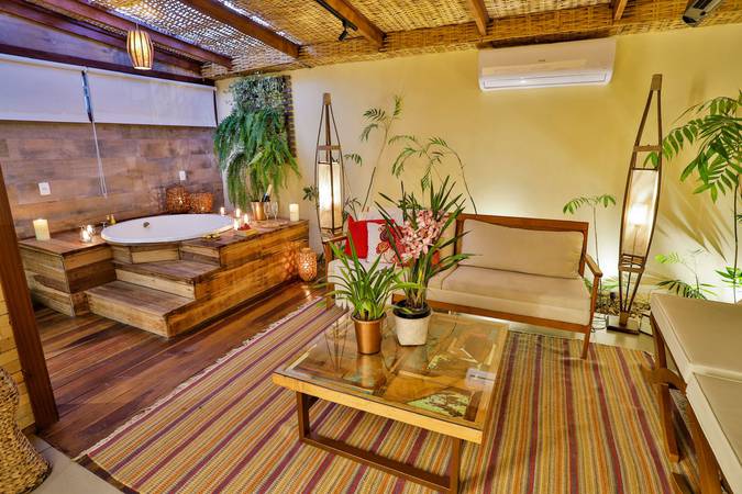 A Casa do Campo é única, com diversos ambientes integrados e garagem privativa. Possui 80m2 e varanda com vista para o jardim, com deck com ofurô para banho de imersão, sala de estar com jardim, camarim e closet. Cconta ainda com café categoria especial e chás variados. Amenities L’Occitane au Brésil, Enxoval 300 Fios e Toalhas Trousseau.