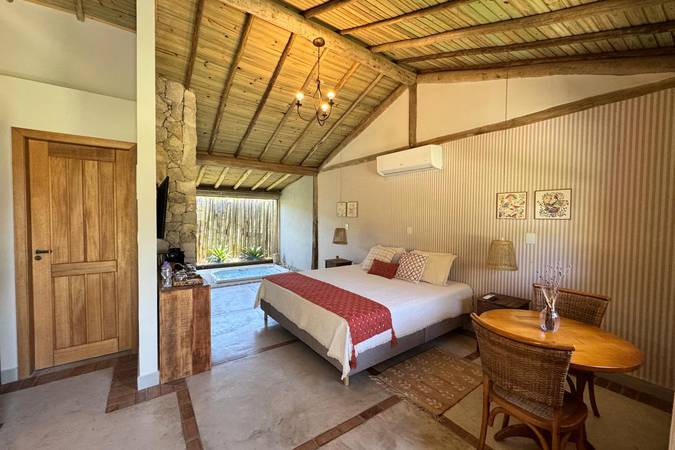 Possue 40m2 e varanda com vista para o jardim, com Enxoval 300 Fios e Toalhas Trousseau e Amenities L’Occitane au Brésil. Ideal para casais que gostam de espaço, muito conforto e exclusividade. Pode ser configurada também para acomodar três ou quatro pessoas.