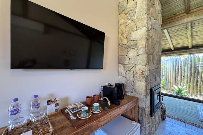 Conta ainda com Café categoria especial e Chás variados e Kit de lenha e Acendedor.