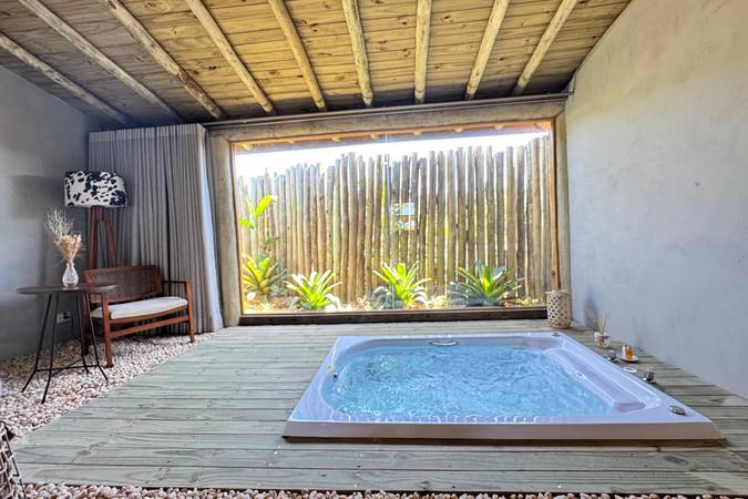 A Vivenda é especial, com hidro luxo com jatos turbo e cromoterapia integrada ao jardim e lareira com vidro protetor (calefator).