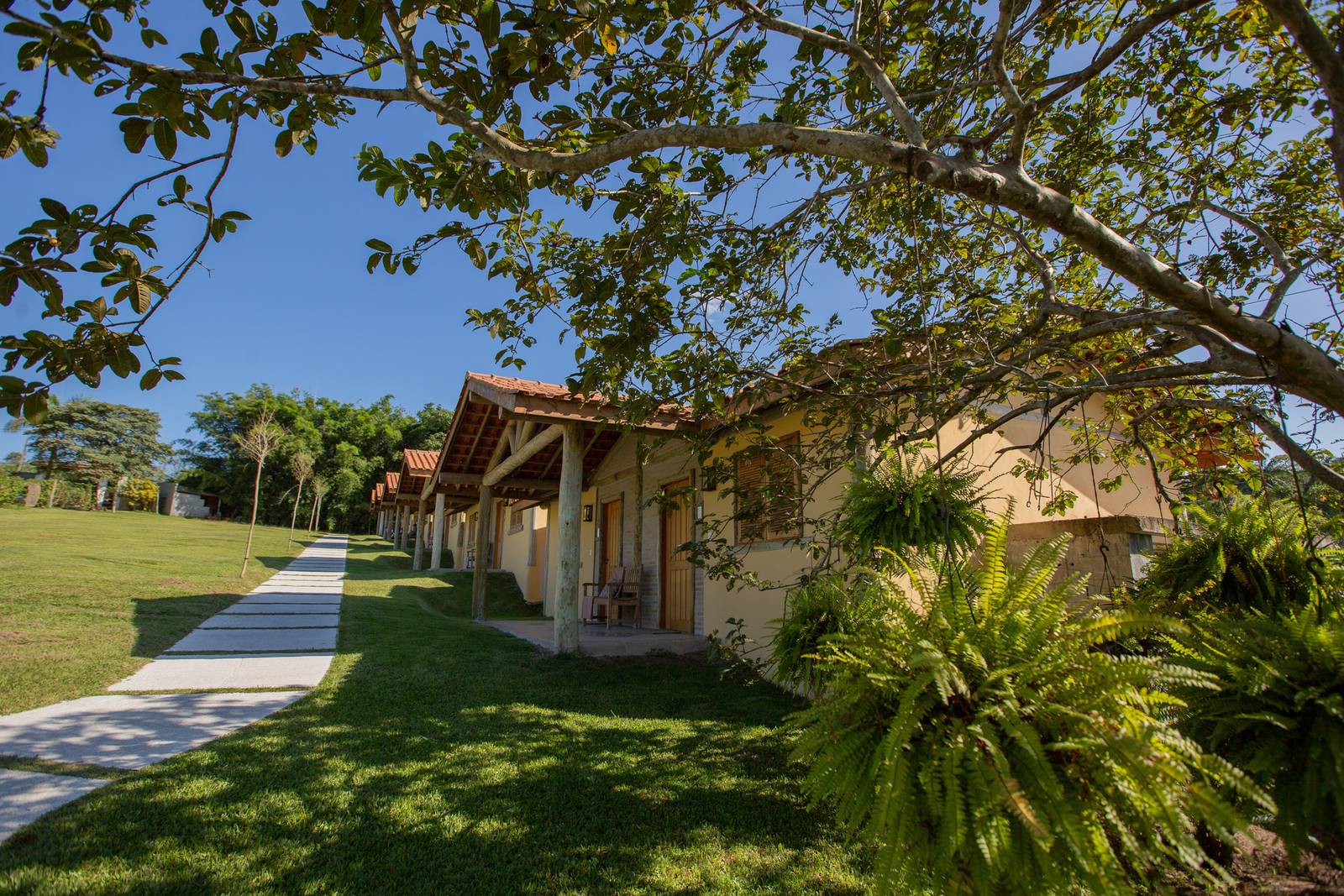 Cabanas completas com cama king, enxoval 300 fios, ar-condicionado, aquecimento, Wi‑Fi, piscina climatizada, restaurante com pensão completa e estacionamento interno gratuito.